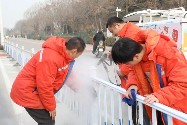 洗車工打開蒸汽噴頭,強(qiáng)勁的蒸汽會(huì)噴出來(lái),洗車工手持噴槍,噴出的高壓熱蒸汽有獨(dú)特的熱分解功能,能迅速軟化站牌、護(hù)欄上的泥沙、鳥糞、蟲尸、蟲膠和污漬,并通過蒸汽快速將其去除。經(jīng)過一個(gè)小時(shí)的高溫清洗過后,一排排嶄新的公共設(shè)施映入了大家的眼簾,同時(shí)公共設(shè)施的漆面達(dá)到了煥然一新的效果。